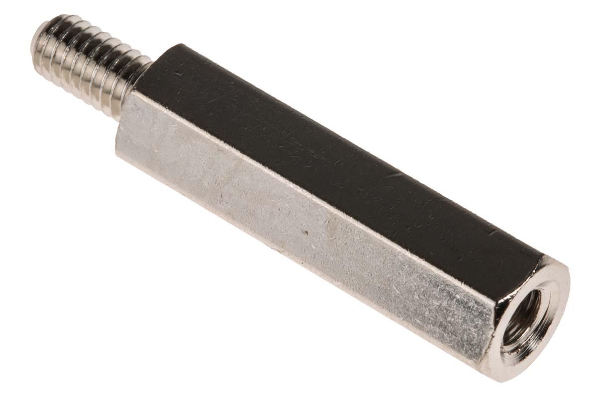 This is Brass Hex Standoff Male/Female 25mm M4 x M4 manufactured by RS Pro. The manufacturer part number is 806-6724. A quality product with a nice nickel plated finish. The product is made from highly stable and reliable brass. It has a typical thread size of m4 x m4.
