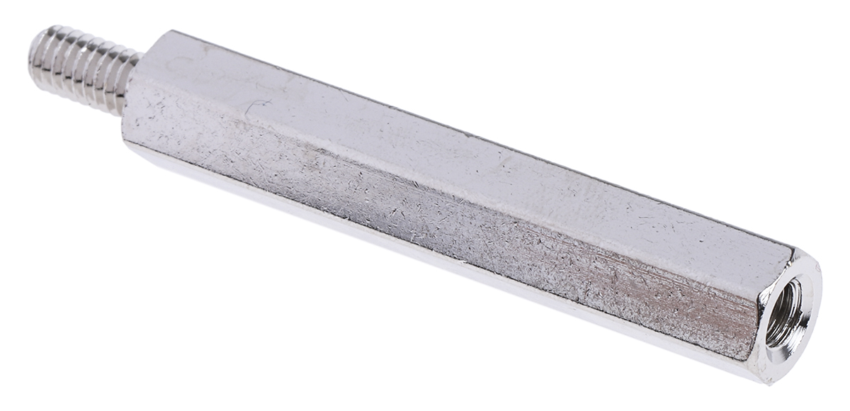 This is Brass Hex Standoff Male/Female 40mm M4 x M4 manufactured by RS Pro. The manufacturer part number is 806-6730. A quality product with a nice nickel plated finish. The product is made from highly stable and reliable brass. It has a typical thread size of m4 x m4.