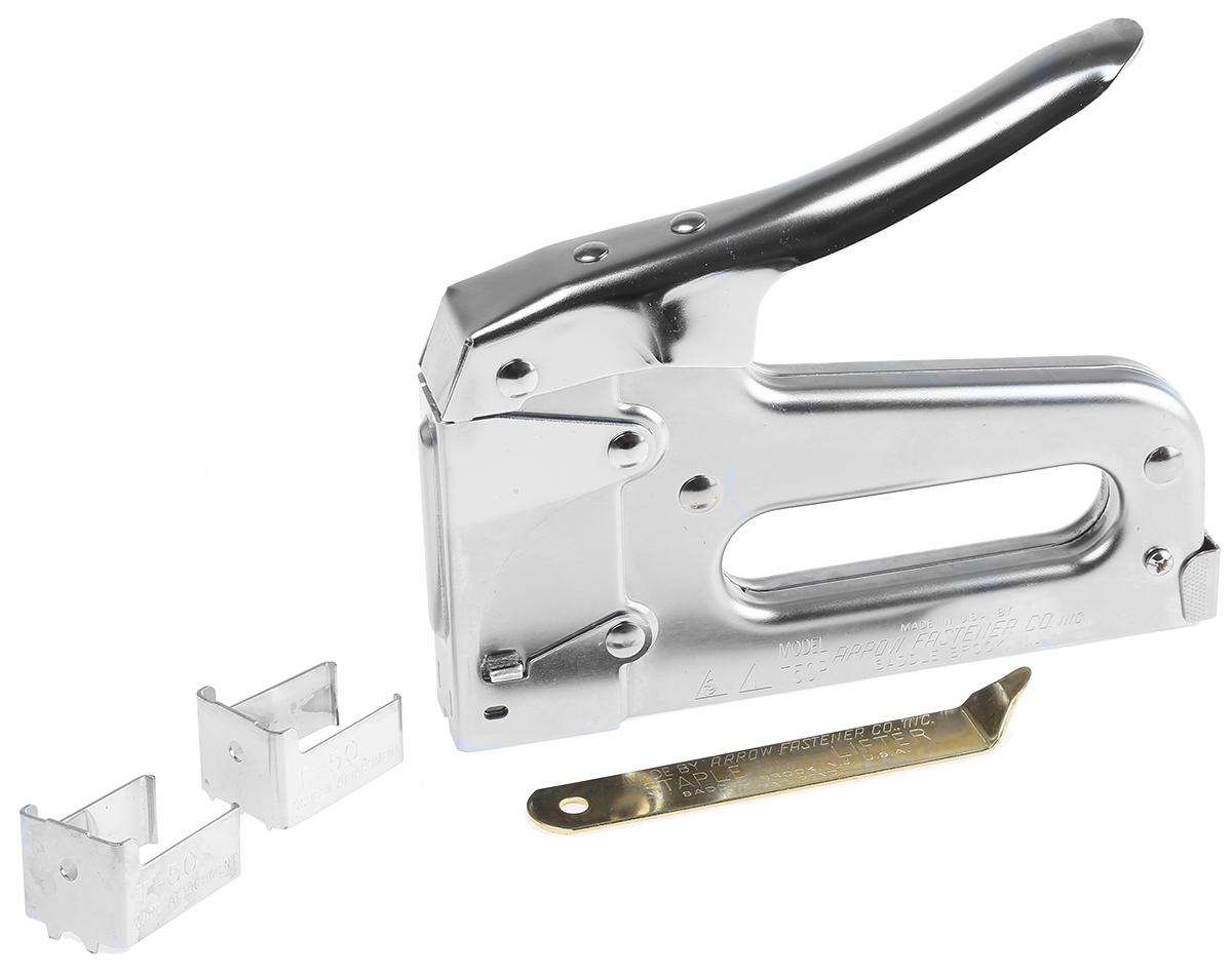 This is 10 mm 12 mm 13 mm 14 mm 6 mm 8 mm Staple Gun manufactured by Arrow. The manufacturer part number is T50VP.