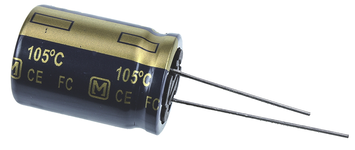 This is Aluminium Electrolytic Capacitor 2200μF 35V dc 18mm FC Radial Series Through Hole Electrolytic ±20% manufactured by Panasonic. The manufacturer part number is EEUFC1V222S. Its diameter is 18mm. The given dimensions of the product include 18 (dia.) x 25mm. The product is available in radial, through hole configuration. The product fc, is a highly preferred choice for users. In addition, the height is 25mm. It provides a 2200µf of capacitance value. It carries a 35v dc of voltage. It has a maximum operating temperature of +105°c. It features ±20% of tolerance value. Whereas, the minimum operating temperature of the product is -55°c. This product use aluminium electrolytic technology.
