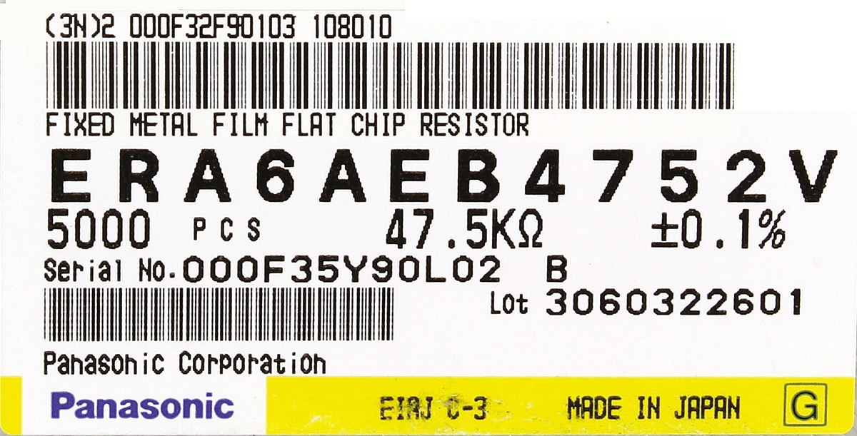 This is ERA Series Thin Film Surface Mount Fixed Resistor 805 Case 47.5kΩ ±0.1% 0.125W ±25ppm/°C manufactured by Panasonic. The manufacturer part number is ERA6AEB4752V. The product era, is a highly preferred choice for users. It carries 47.5kω resistance. It exhibits an excellent temperature coefficient of ±25ppm/°c. This product use thin film technology. Whereas, the minimum operating temperature of the product is -55°c. It has a maximum operating temperature of +155°c. It features ±0.1% of tolerance value.