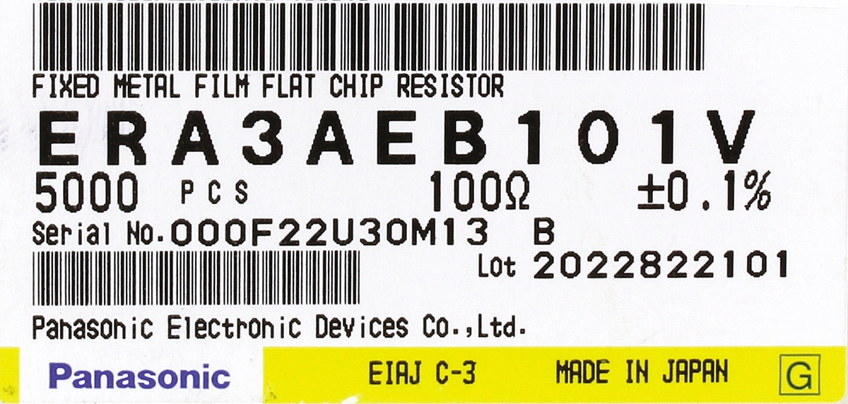 This is ERA Series Thin Film Surface Mount Fixed Resistor 603 Case 100Ω ±0.1% 0.1W ±25ppm/°C manufactured by Panasonic. The manufacturer part number is ERA3AEB101V. The product era, is a highly preferred choice for users. It carries 100ω resistance. It exhibits an excellent temperature coefficient of ±25ppm/°c. This product use thin film technology. Whereas, the minimum operating temperature of the product is -55°c. It has a maximum operating temperature of +155°c. It features ±0.1% of tolerance value.