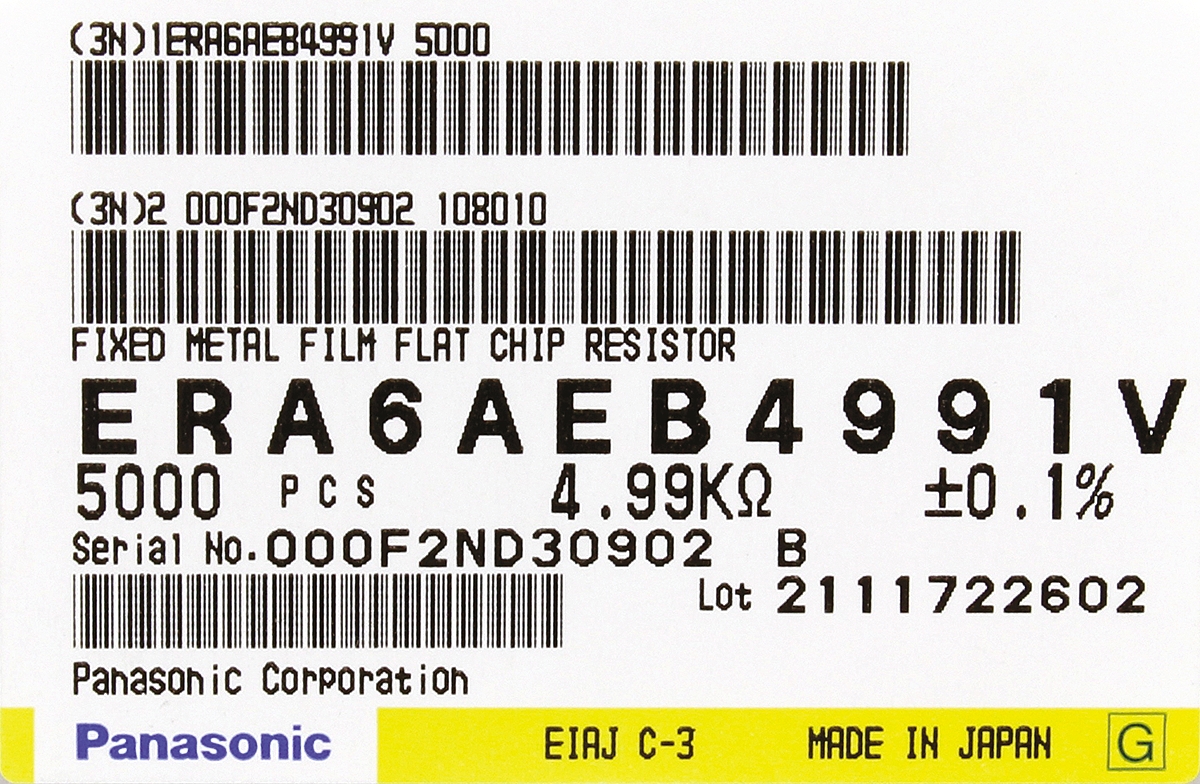 This is ERA Series Thin Film Surface Mount Fixed Resistor 805 Case 4.99kΩ ±0.1% 0.125W ±25ppm/°C manufactured by Panasonic. The manufacturer part number is ERA6AEB4991V. The product era, is a highly preferred choice for users. It carries 4.99kω resistance. It exhibits an excellent temperature coefficient of ±25ppm/°c. This product use thin film technology. Whereas, the minimum operating temperature of the product is -55°c. It has a maximum operating temperature of +155°c. It features ±0.1% of tolerance value.