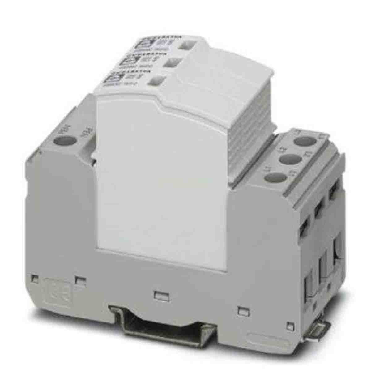 This is 3 Phase Surge Arrester 40kA 350 V DIN Rail Mount manufactured by Phoenix Contact. The manufacturer part number is 2909968.