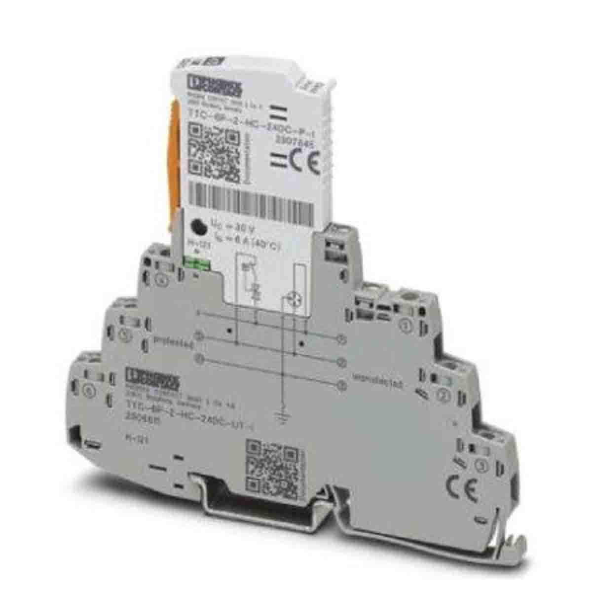 This is 2 Phase Industrial Surge Protection 5kA 50 V DIN Rail Mount manufactured by Phoenix Contact. The manufacturer part number is 2906811.