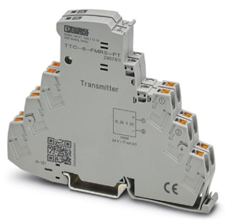 This is 24 V TTC Surge Protection Device DIN Rail Mounting manufactured by Phoenix Contact. The manufacturer part number is 2907811. The given dimensions of the product include 83.5 x 6.2 x 105.8mm. The product is available in din rail configuration. The product ttc-6-fmrs-pt, is a highly preferred choice for users. Its accurate length is 83.5mm. In addition, the height is 105.8mm. The product comes in 6.2mm depth. Whereas, the minimum operating temperature of the product is -40°c. It has a maximum operating temperature of +60°c.