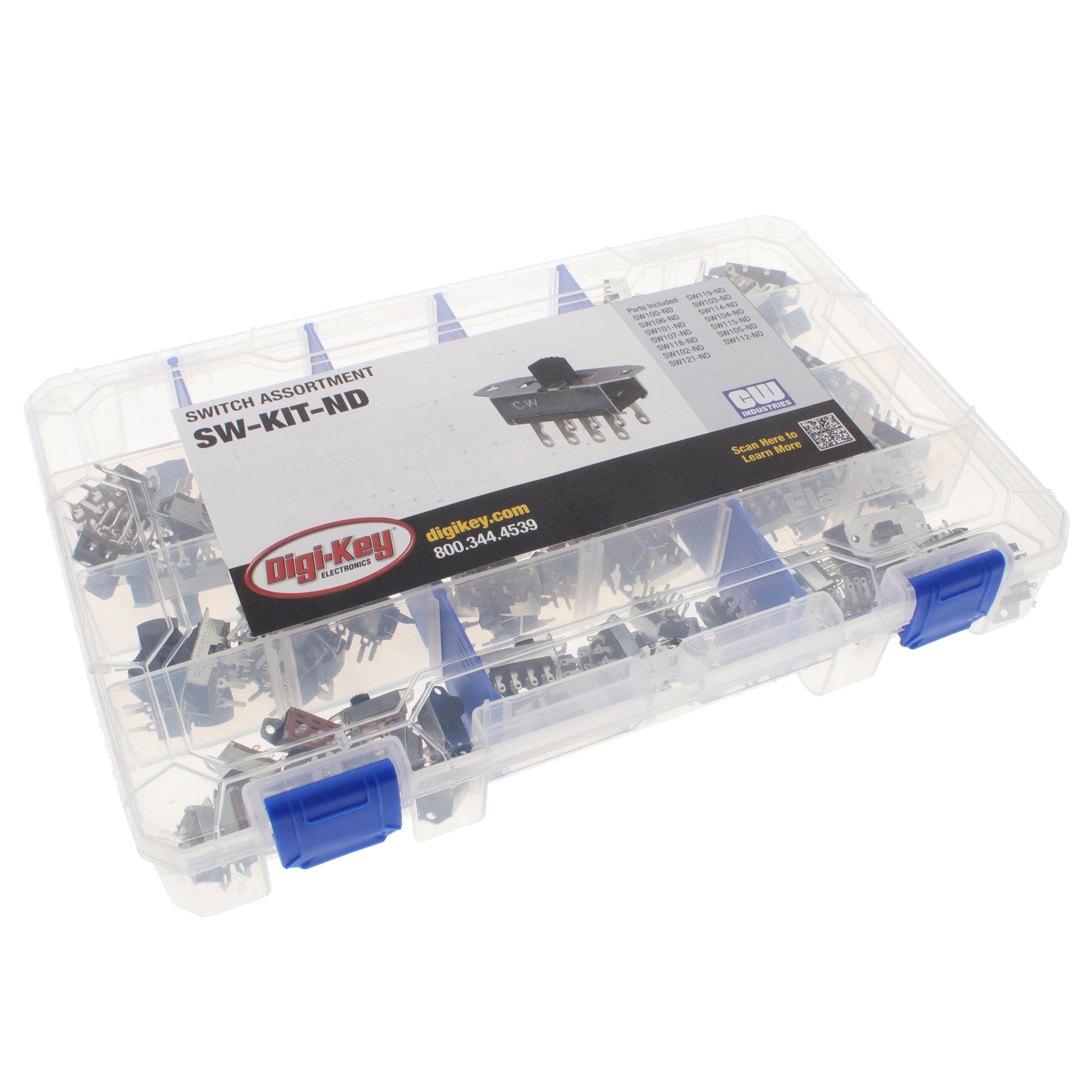 This is manufactured by CW Industries. The manufacturer part number is SW-KIT. It is assigned with possible HTSUS value of 8536.50.9050. The product is rohs3 compliant. Moreover, it has pc pin; press-fit; solder lug; wire wrap terminal style. The product exhibits 125v of AC voltage rating. It is shipped in notebook. Its typical moisture sensitivity level is not applicable. It has an integral assorted circuit. 125v of DC voltage rating. Available in 120 pieces (14 values - mixed quantities) quantity. The slide is designed to provide robust applications in a variety of specific settings. The product is available in panel mount; through hole, right angle; through hole configuration. The product carries standard actuator. The product is designated with the ear99 code number