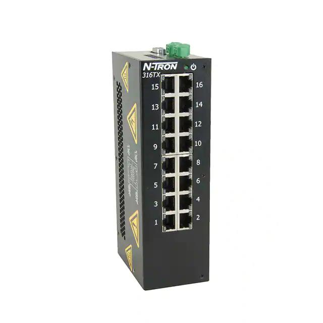 This is manufactured by Red Lion Controls. The manufacturer part number is 316TX. It is assigned with possible HTSUS value of 8517.62.0020. The product is rohs compliant. The product has -40°c ~ 85°c operating temperature range. The possible product's input voltage is 10 ~ 30vdc. It comes in switch - unmanaged configuration. Has copper type - 10/100. In addition, it is reach unaffected. The product is available in fixed configuration. It is shipped in bulk. rj45 Connector type offer robust functionality. Its typical moisture sensitivity level is 1 (unlimited). This product features 16 number of ports. It has a long 2 weeks standard lead time. The product is available in din rail configuration. Consists 16 copper ports. The product n-tron®, is a highly preferred choice for users. The product is designated with the 5a991b1 code number