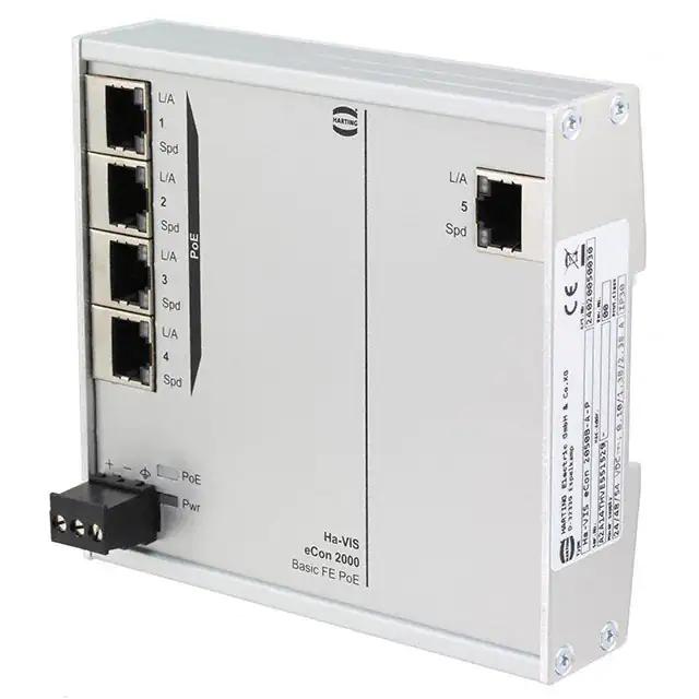 This is manufactured by HARTING. The manufacturer part number is 24020050030. It is assigned with possible HTSUS value of 8517.62.0020. The product is rohs3 compliant. The product has 0°c ~ 55°c operating temperature range. The possible product's input voltage is 47 ~ 60vdc. It comes in switch - unmanaged configuration. Has copper type - 10/100. In addition, it is reach unaffected. The product is available in fixed configuration. It is shipped in box. rj45 Connector type offer robust functionality. Its typical moisture sensitivity level is 1 (unlimited). This product features 5 number of ports. It has a long 23 weeks standard lead time. It is IP rated with ip30. The product is available in din rail configuration. Consists 5 copper ports. The product econ 2000, is a highly preferred choice for users. The product is designated with the ear99 code number