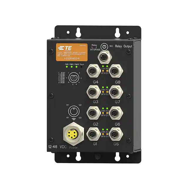 This is manufactured by TE Connectivity AMP Connectors. The manufacturer part number is 1-2320402-4. It is assigned with possible HTSUS value of 8517.62.0020. The product is rohs compliant. The product has -40°c ~ 70°c operating temperature range. The possible product's input voltage is 12 ~ 48vdc. It comes in switch - unmanaged configuration. Has copper type - 10/100/1000. The product is available in fixed configuration. It is shipped in box. m12 Connector type offer robust functionality. Its typical moisture sensitivity level is not applicable. This product features 8 number of ports. It has a long 25 weeks standard lead time. It is IP rated with ip40. The product is available in chassis mount configuration. Consists 8 copper ports. Moreover, it corresponds to 2320402, a base product number of the product. The product is designated with the ear99 code number