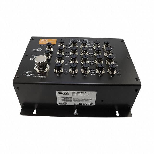 This is manufactured by TE Connectivity AMP Connectors. The manufacturer part number is 2352905-1. It is assigned with possible HTSUS value of 8517.62.0020. The product is rohs compliant. The product has -40°c ~ 75°c operating temperature range. The possible product's input voltage is 12 ~ 55vdc. It comes in switch - managed configuration. Has copper type - 10/100/1000. In addition, it is vendor undefined. The product is available in fixed configuration. It is shipped in box. m12 Connector type offer robust functionality. Its typical moisture sensitivity level is 1 (unlimited). This product features 24 number of ports. It has a long 24 weeks standard lead time. It is IP rated with ip30. The product is available in chassis mount configuration. Consists 24 copper ports. Moreover, it corresponds to 2352905, a base product number of the product. The product is designated with the ear99 code number