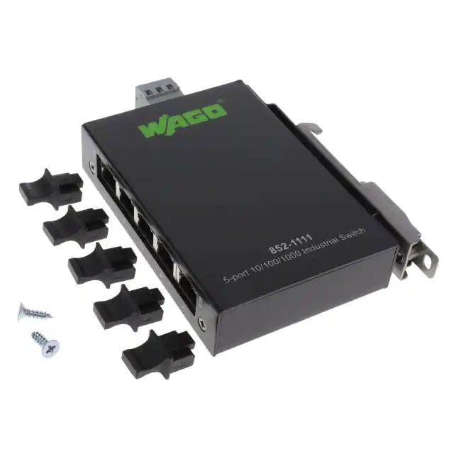 This is manufactured by WAGO Corporation. The manufacturer part number is 852-1111. It is assigned with possible HTSUS value of 8517.62.0020. The product is rohs3 compliant. The product has -40°c ~ 70°c operating temperature range. It comes in switch configuration. Has copper type - 10/100/1000. In addition, it is reach unaffected. The product is available in fixed configuration. It is shipped in bulk. rj-45 Connector type offer robust functionality. Its typical moisture sensitivity level is 1 (unlimited). This product features 5 number of ports. It is IP rated with ip30. The product is available in din rail configuration. Consists 5 copper ports. Moreover, it corresponds to 852-11, a base product number of the product. The product is designated with the 5a991b1 code number