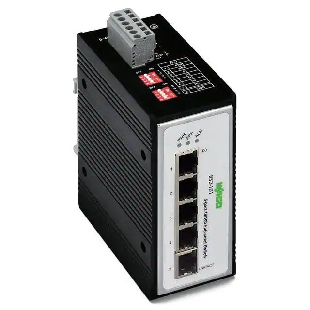 This is manufactured by WAGO Corporation. The manufacturer part number is 852-101. The product is rohs3 compliant. The product has -40°c ~ 70°c operating temperature range. The possible product's input voltage is 9v ~ 48v. It comes in switch - unmanaged configuration. Has copper type - 10/100. The product is available in fixed configuration. It is shipped in box. rj45 Connector type offer robust functionality. Its typical moisture sensitivity level is not applicable. This product features 5 number of ports. It has a long 12 weeks standard lead time. It is IP rated with ip30. The product is available in din rail configuration. Consists 5 copper ports.