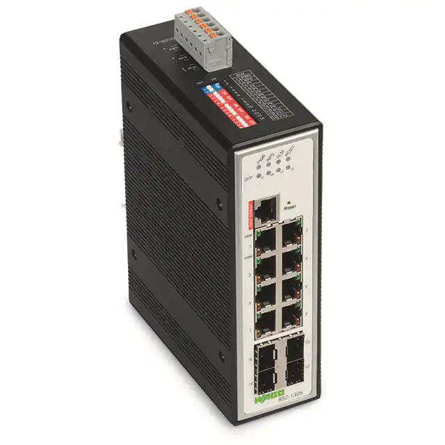 This is manufactured by WAGO Corporation. The manufacturer part number is 852-1305. The product is rohs3 compliant. The product has -40°c ~ 70°c operating temperature range. The possible product's input voltage is 12v ~ 60v. It comes in switch - unmanaged configuration. Has copper type - 10/100/1000. 4 ports. The product is available in fixed + sfp configuration. It is shipped in box. rj45, lc, sfp Connector type offer robust functionality. Its typical moisture sensitivity level is not applicable. This product features 13 number of ports. It has a long 12 weeks standard lead time. It is IP rated with ip30. The product is available in din rail configuration. Consists 8 copper ports. It has a 1000base-sx/lx (multimode, singlemode) fiber. Includes 4 fiber ports.