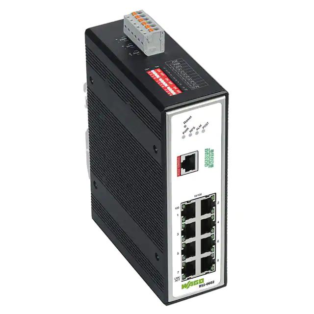 This is manufactured by WAGO Corporation. The manufacturer part number is 852-602. The product is rohs3 compliant. The product has -40°c ~ 70°c operating temperature range. The possible product's input voltage is 12v ~ 60v. It comes in switch - managed configuration. Has copper type - 10/100. The product is available in fixed configuration. It is shipped in box. rj45 Connector type offer robust functionality. Its typical moisture sensitivity level is not applicable. This product features 9 number of ports. It has a long 12 weeks standard lead time. It is IP rated with ip30. The product is available in din rail configuration. Consists 8 copper ports.