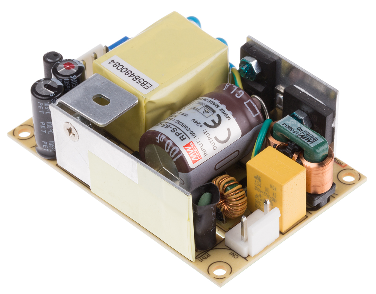 This is 65W Embedded Switch Mode Power Supply SMPS 2.71A 24V dc manufactured by Mean Well. The manufacturer part number is RPS-65-24. Additionally, the product is supplied with 1 outputs. The product is available in pcb mount configuration. The typical product's weight is 110g. Its accurate length is 76.2mm. Furthermore, the product is 50.8mm wide. The product comes in 24mm depth.