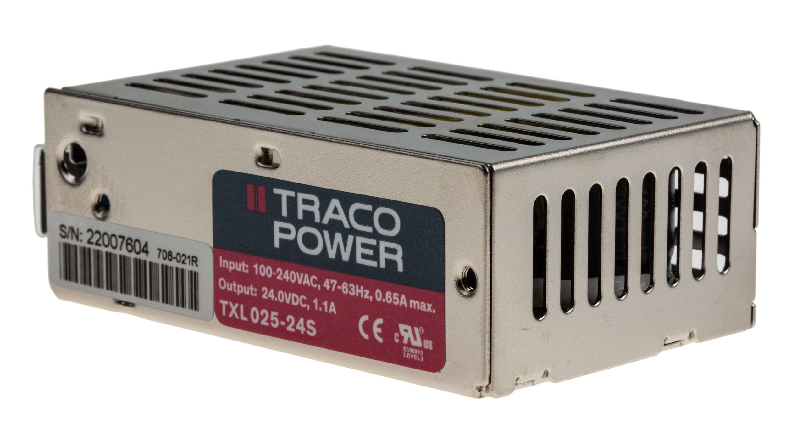 This is 25W Embedded Switch Mode Power Supply SMPS 1.1A 24V dc manufactured by TRACOPOWER. The manufacturer part number is TXL 025-24S. Additionally, the product is supplied with 1 outputs. The product is available in chassis mount configuration. The typical product's weight is 190g. It is a highly efficient product with an 70 → 84% of high efficiency. The product txl, is a highly preferred choice for users. Its accurate length is 93mm. Furthermore, the product is 51mm wide. The product comes in 28.5mm depth.