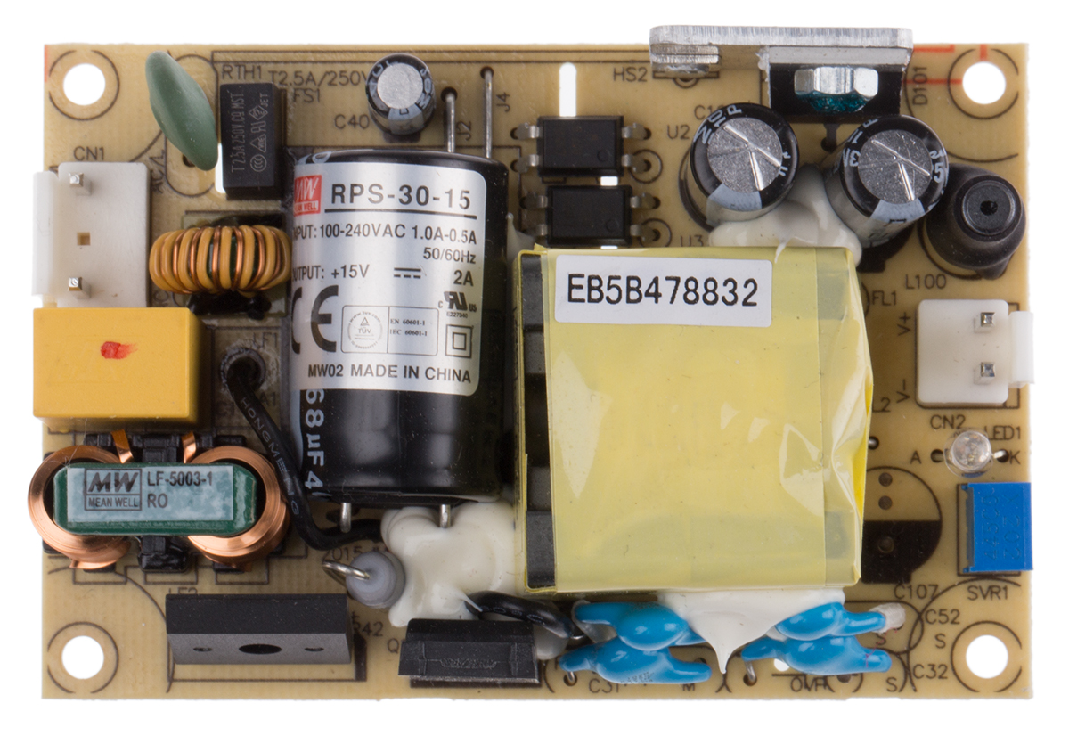 This is 30W Embedded Switch Mode Power Supply SMPS 2A 15V dc manufactured by Mean Well. The manufacturer part number is RPS-30-15. Additionally, the product is supplied with 1 outputs. The product is available in pcb mount configuration. The typical product's weight is 90g. Its accurate length is 76.2mm. Furthermore, the product is 50.8mm wide. The product comes in 24mm depth.