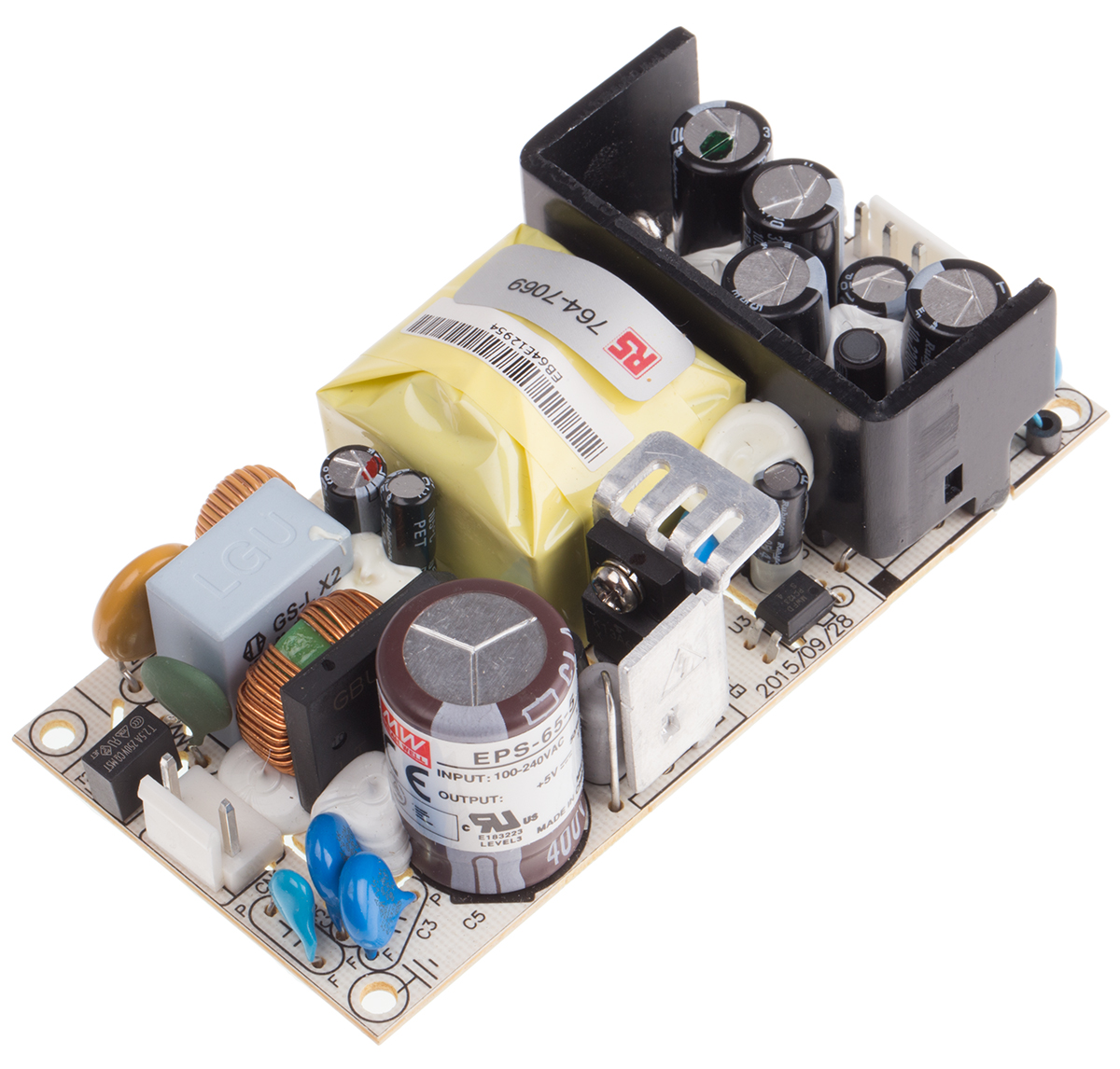 This is 55W Embedded Switch Mode Power Supply SMPS 11A 5V dc manufactured by Mean Well. The manufacturer part number is EPS-65-5. Additionally, the product is supplied with 1 outputs. The product is available in chassis mount configuration. The typical product's weight is 150g. Furthermore, the product is 50.8mm wide. Its accurate length is 101.6mm. It is a highly efficient product with an 82% of high efficiency. The product comes in 29mm depth.