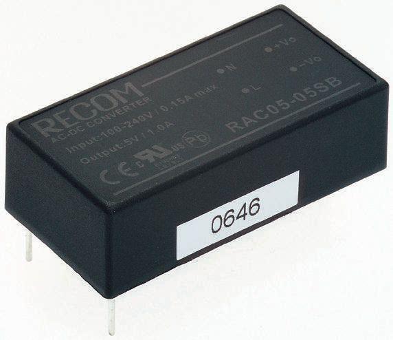 This is 5W Embedded Switch Mode Power Supply SMPS 1A 5V dc manufactured by Recom. The manufacturer part number is RAC05-05SB. Additionally, the product is supplied with 1 outputs. The product is available in pcb mount configuration. The typical product's weight is 30g. It is a highly efficient product with an 71% of high efficiency. The product rac05-b, is a highly preferred choice for users. Its accurate length is 50.8mm. Furthermore, the product is 25.4mm wide. The product comes in 15.16mm depth.