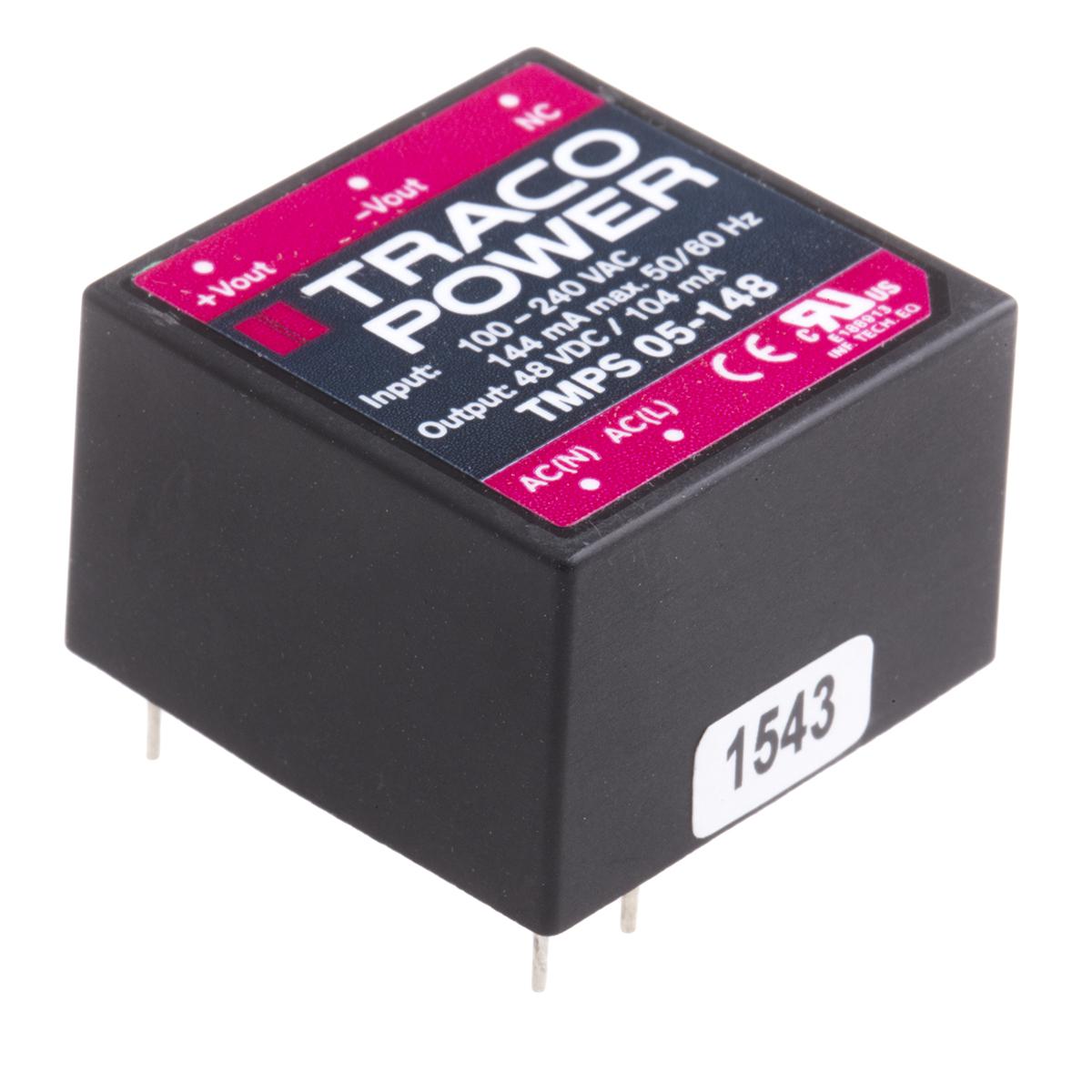 This is 5W Embedded Switch Mode Power Supply SMPS 135mA 48V dc manufactured by TRACOPOWER. The manufacturer part number is TMPS 05-148. Additionally, the product is supplied with 1 outputs. The product is available in through hole configuration. It is a highly efficient product with an 81% of high efficiency. Its accurate length is 25.4mm. Furthermore, the product is 25.4mm wide. The product comes in 15.3mm depth.