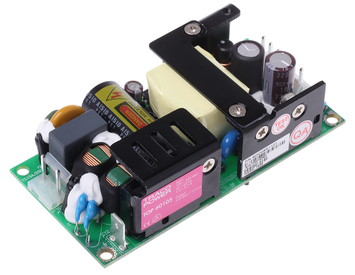 This is 55W Embedded Switch Mode Power Supply SMPS 11A 5V dc manufactured by TRACOPOWER. The manufacturer part number is TOP 60105. Additionally, the product is supplied with 1 outputs. The product is available in chassis mount configuration. The typical product's weight is 205g. Furthermore, the product is 50.8mm wide. Its accurate length is 101.6mm. It is a highly efficient product with an 80 → 88% of high efficiency. The product comes in 30mm depth.