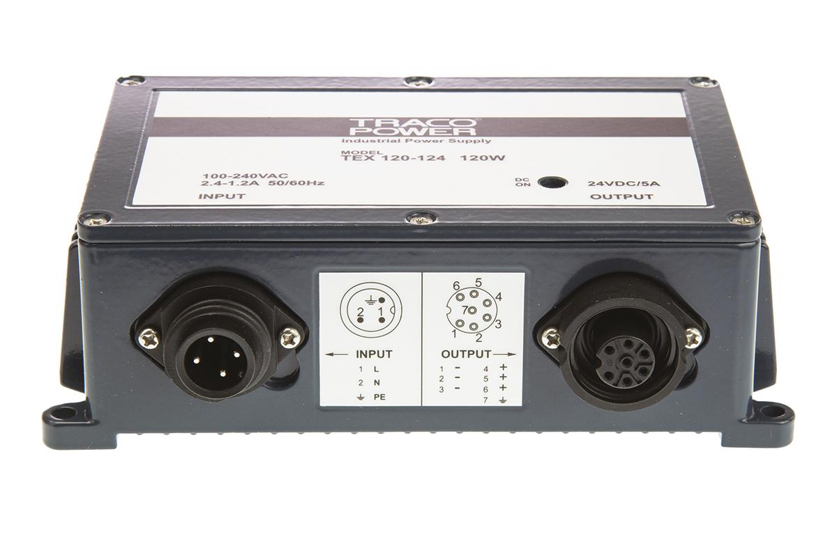 This is 120W Embedded Switch Mode Power Supply SMPS 5A 24V dc manufactured by TRACOPOWER. The manufacturer part number is TEX 120-124. Additionally, the product is supplied with 1 outputs. The product is available in chassis mount configuration. The typical product's weight is 1kg. Furthermore, the product is 93mm wide. Its accurate length is 174mm. It is a highly efficient product with an 90% of high efficiency. The product comes in 56mm depth.