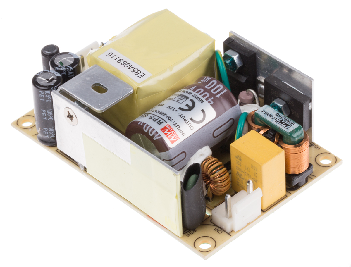 This is 65W Embedded Switch Mode Power Supply SMPS 5.42A 12V dc manufactured by Mean Well. The manufacturer part number is RPS-65-12. Additionally, the product is supplied with 1 outputs. The product is available in pcb mount configuration. The typical product's weight is 110g. Its accurate length is 76.2mm. Furthermore, the product is 50.8mm wide. The product comes in 24mm depth.