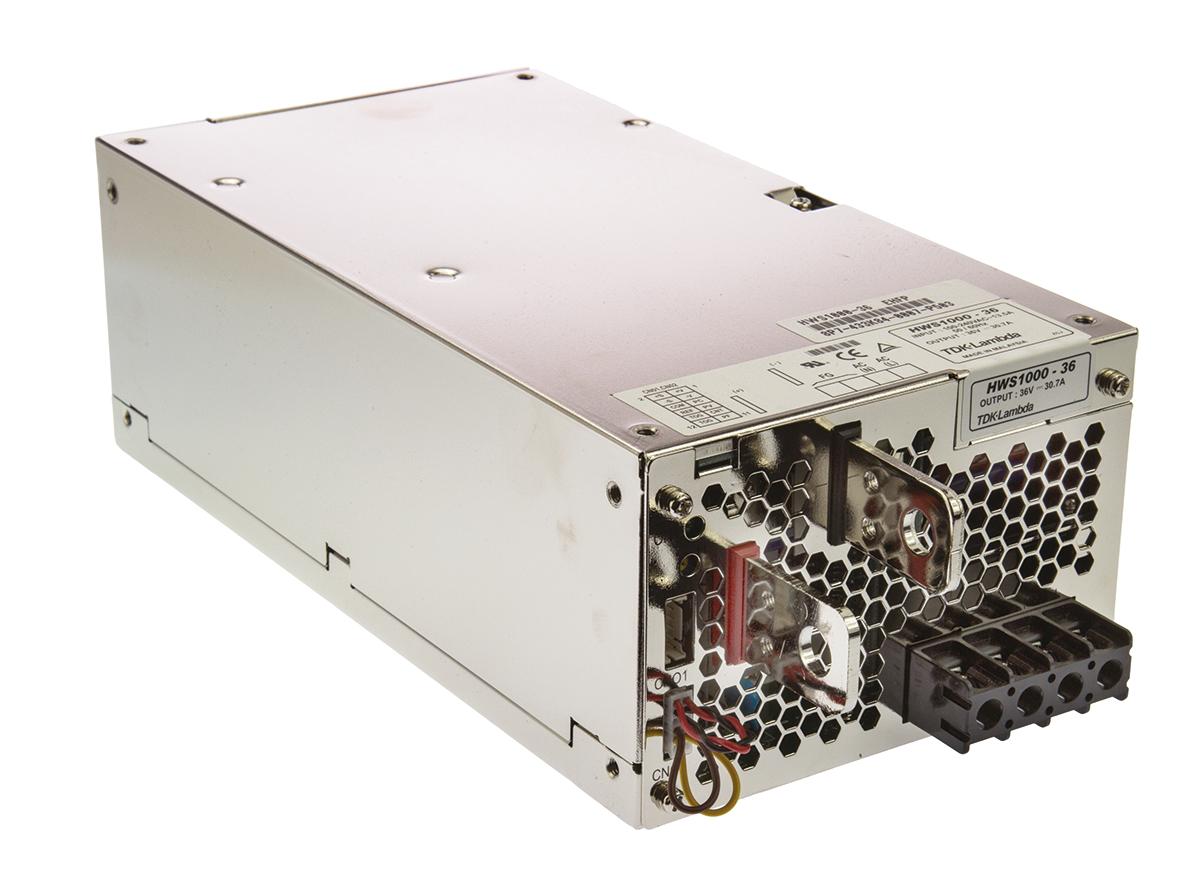 This is 1kW Embedded Switch Mode Power Supply SMPS 29.3A 36V dc manufactured by TDK-Lambda. The manufacturer part number is HWS1000-36. Additionally, the product is supplied with 1 outputs. The product is available in chassis mount configuration. The typical product's weight is 3.2kg. Furthermore, the product is 3.25in wide. Its accurate length is 9.45in. It is a highly efficient product with an 88% of high efficiency. The product comes in 5in depth.