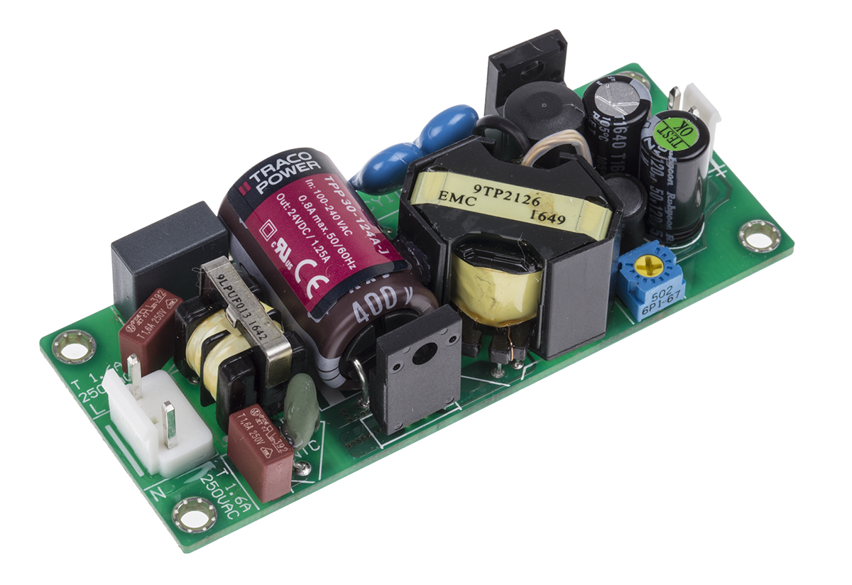 This is 30W Embedded Switch Mode Power Supply SMPS 1.25A 24V dc Medical Approved manufactured by TRACOPOWER. The manufacturer part number is TPP 30-124A-J. Additionally, the product is supplied with 1 outputs. The product is available in chassis mount configuration. The typical product's weight is 60.5g. Its accurate length is 84.8mm. Furthermore, the product is 34.6mm wide. The product comes in 19.6mm depth.