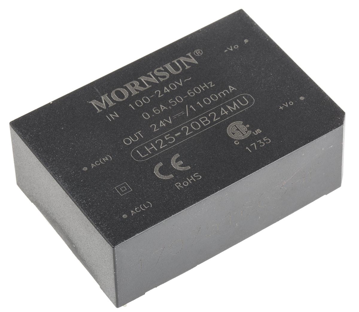 This is 25W AC-DC Converter 1.1A 24V dc Medical Approved manufactured by RS Pro. The manufacturer part number is 144-6289. Additionally, the product is supplied with 1 outputs. The product is available in pcb mount configuration. The typical product's weight is 120g. Its accurate length is 70mm. Furthermore, the product is 48mm wide. The product comes in 23.5mm depth.