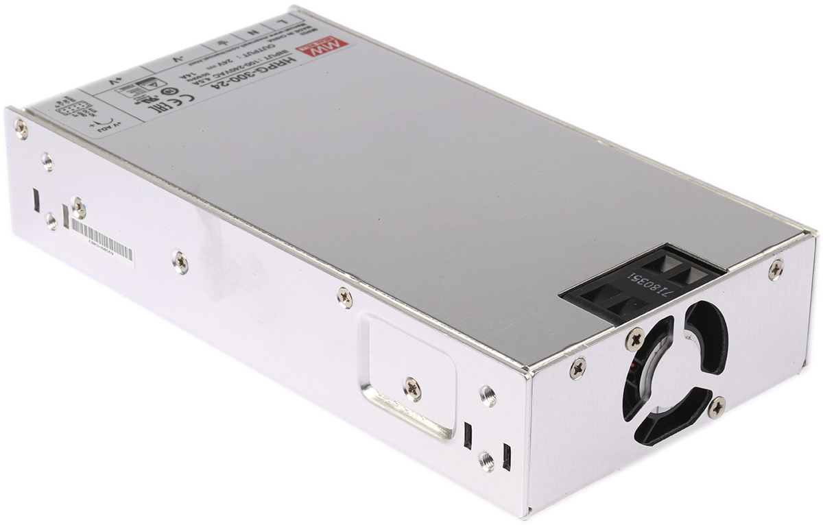 This is 336W Embedded Switch Mode Power Supply SMPS 14A 24V dc manufactured by Mean Well. The manufacturer part number is HRPG-300-24RS. Additionally, the product is supplied with 1 outputs. The product is available in chassis mount configuration. The typical product's weight is 950g. Furthermore, the product is 105mm wide. Its accurate length is 199mm. It is a highly efficient product with an 87% of high efficiency. The product comes in 41mm depth.