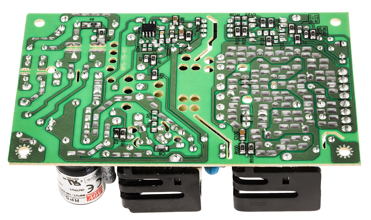 This is 76.8W Embedded Switch Mode Power Supply SMPS 3.2A 24V dc Medical Approved manufactured by Mean Well. The manufacturer part number is RPS-75-24. Additionally, the product is supplied with 1 outputs. The product is available in chassis mount configuration. The typical product's weight is 260g. Its accurate length is 127mm. Furthermore, the product is 76.2mm wide. The product comes in 31mm depth.