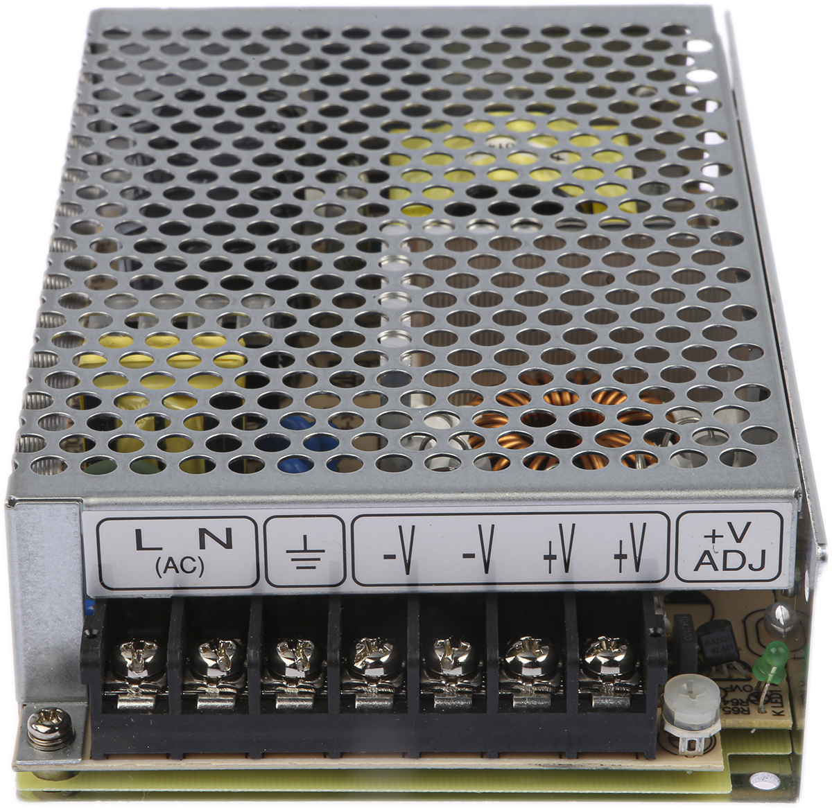 This is 108W Embedded Switch Mode Power Supply SMPS 4.5A 24V dc manufactured by Mean Well. The manufacturer part number is RS-100-24. Additionally, the product is supplied with 1 outputs. The product is available in chassis mount configuration. The typical product's weight is 600g. Furthermore, the product is 97mm wide. Its accurate length is 159mm. It is a highly efficient product with an 84% of high efficiency. The product comes in 38mm depth.