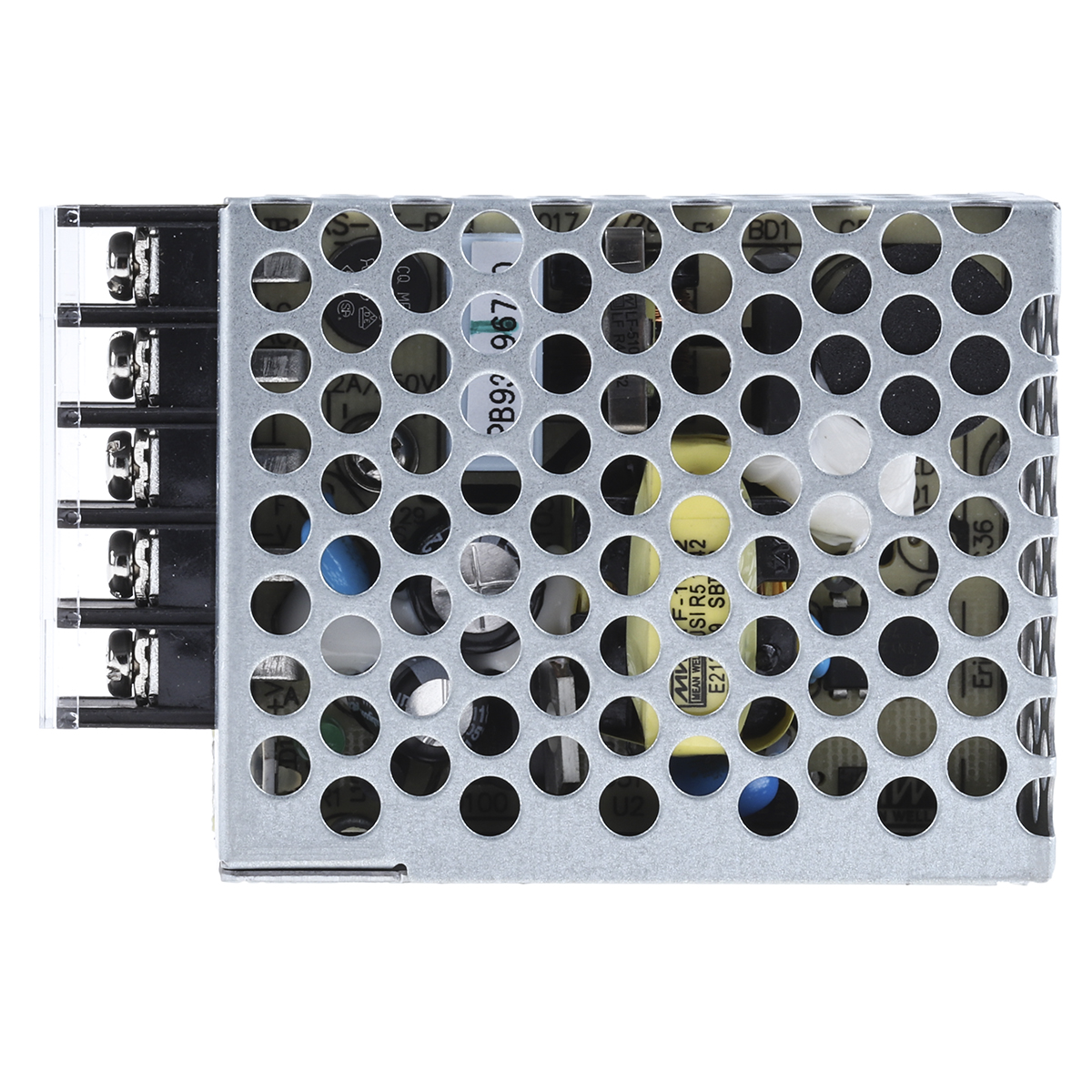 This is 15.6W Embedded Switch Mode Power Supply SMPS 1.3A 12V dc manufactured by Mean Well. The manufacturer part number is RS-15-12. Additionally, the product is supplied with 1 outputs. The product is available in chassis mount configuration. The typical product's weight is 130g. Furthermore, the product is 51mm wide. Its accurate length is 62.5mm. It is a highly efficient product with an 81% of high efficiency. The product comes in 28mm depth.