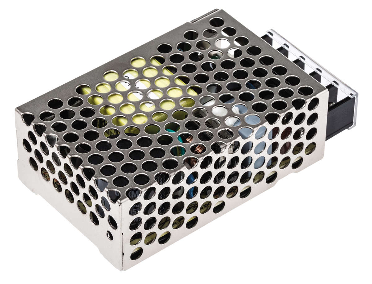 This is 25.5W Embedded Switch Mode Power Supply SMPS 1.7A 15V dc manufactured by Mean Well. The manufacturer part number is RS-25-15. Additionally, the product is supplied with 1 outputs. The product is available in chassis mount configuration. The typical product's weight is 200g. Furthermore, the product is 51mm wide. Its accurate length is 78mm. It is a highly efficient product with an 83.5% of high efficiency. The product comes in 28mm depth.