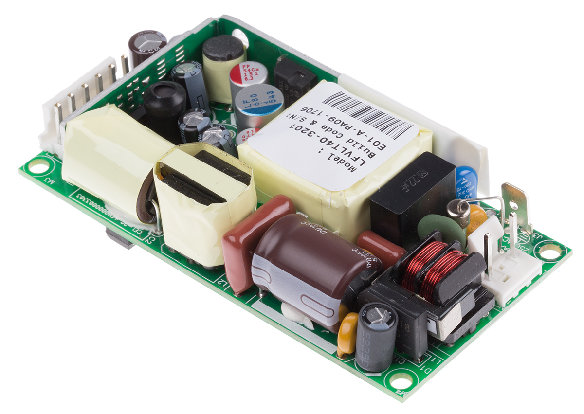 This is 40W Triple Output Embedded Switch Mode Power Supply SMPS 1 A 6 A 500 mA -12.8/5.2/23.8V dc manufactured by EOS. The manufacturer part number is LFVLT40-3201. Additionally, the product is supplied with 3 outputs. The product is available in chassis mount configuration. The typical product's weight is 150g. Furthermore, the product is 50.8mm wide. Its accurate length is 101.6mm. It is a highly efficient product with an 82% of high efficiency. The product comes in 27.18mm depth.