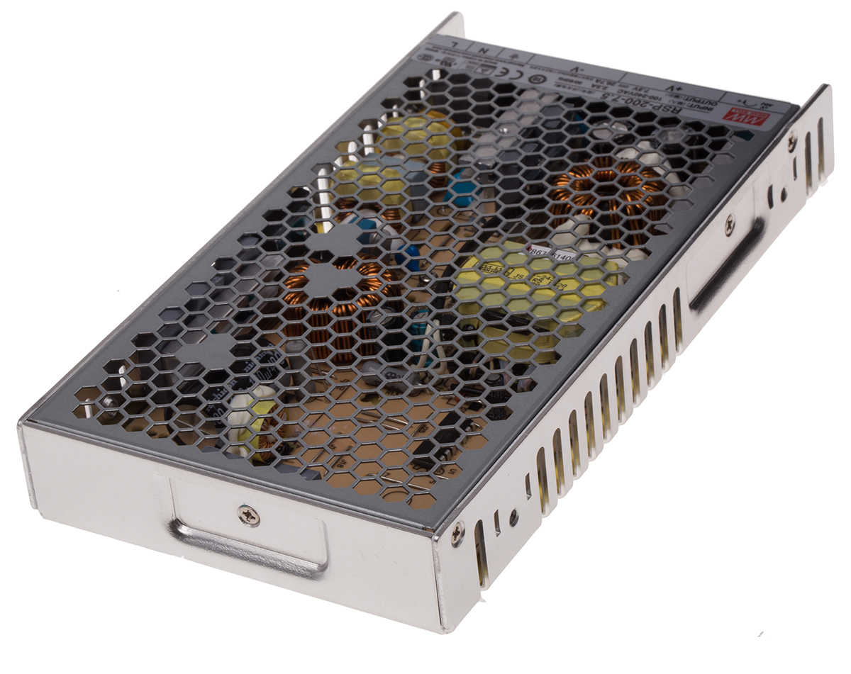 This is 200W Embedded Switch Mode Power Supply SMPS 26.7A 7.5V dc manufactured by Mean Well. The manufacturer part number is RSP-200-7.5. Additionally, the product is supplied with 1 outputs. The product is available in chassis mount configuration. The typical product's weight is 720g. Furthermore, the product is 115mm wide. Its accurate length is 215mm. It is a highly efficient product with an 89% of high efficiency. The product comes in 30mm depth.