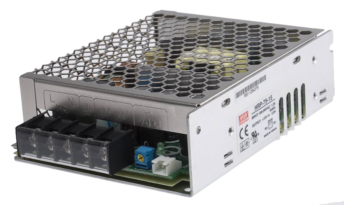 This is 75W Embedded Switch Mode Power Supply SMPS 5A 15V dc manufactured by Mean Well. The manufacturer part number is HRP-75-15RS. Additionally, the product is supplied with 1 outputs. The product is available in chassis mount configuration. The typical product's weight is 470g. Furthermore, the product is 98mm wide. Its accurate length is 129mm. It is a highly efficient product with an 88% of high efficiency. The product comes in 38mm depth.