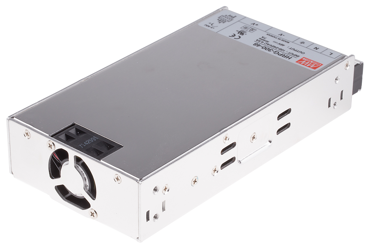 This is 336W Embedded Switch Mode Power Supply SMPS 7A 48V dc manufactured by Mean Well. The manufacturer part number is HRPG-300-48RS. Additionally, the product is supplied with 1 outputs. The product is available in chassis mount configuration. The typical product's weight is 950g. Furthermore, the product is 105mm wide. Its accurate length is 199mm. It is a highly efficient product with an 89% of high efficiency. The product comes in 41mm depth.