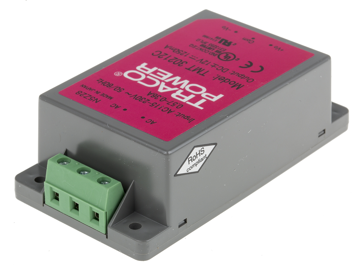 This is 30W Dual Output Embedded Switch Mode Power Supply SMPS 1.25A ±12V dc Medical Approved manufactured by TRACOPOWER. The manufacturer part number is TMT 30212C. Additionally, the product is supplied with 2 outputs. The product is available in chassis mount configuration. The typical product's weight is 180g. Its accurate length is 96mm. Furthermore, the product is 51mm wide. The product comes in 29.5mm depth.