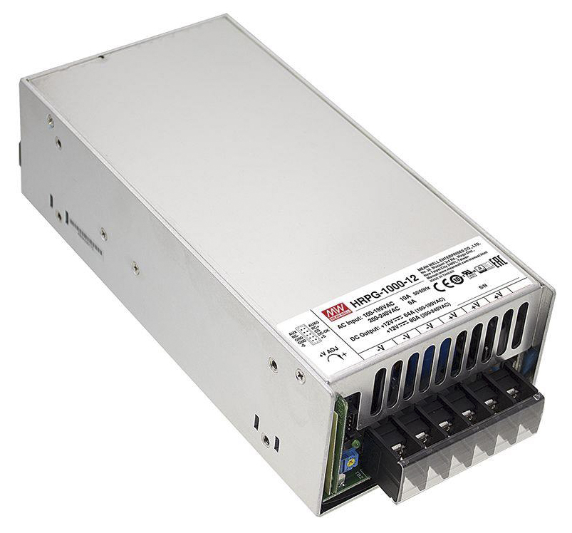 This is 960W Embedded Switch Mode Power Supply SMPS 80A 12V dc manufactured by Mean Well. The manufacturer part number is HRPG-1000-12. Additionally, the product is supplied with 1 outputs. The product is available in chassis mount configuration. The typical product's weight is 1.5kg. Furthermore, the product is 105mm wide. Its accurate length is 218mm. It is a highly efficient product with an 91.5% of high efficiency. The product comes in 63.5mm depth.