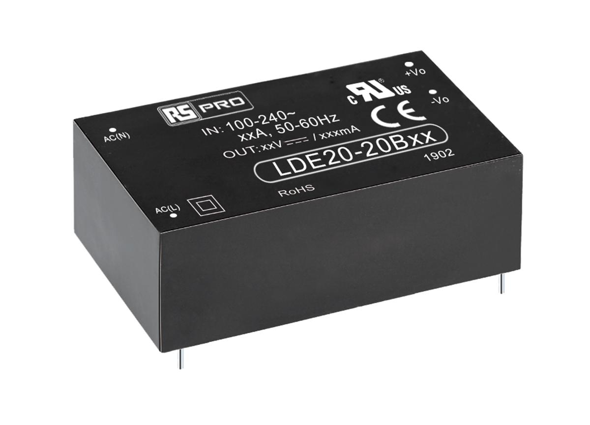 This is 20W Embedded Switch Mode Power Supply SMPS 1.66A 12V dc Medical Approved manufactured by RS PRO. The manufacturer part number is 181-2125. Additionally, the product is supplied with 1 outputs. The product is available in pcb mount configuration. The typical product's weight is 60g. Furthermore, the product is 28.8mm wide. Its accurate length is 53.8mm. It is a highly efficient product with an 82% of high efficiency. The product comes in 23.5mm depth.