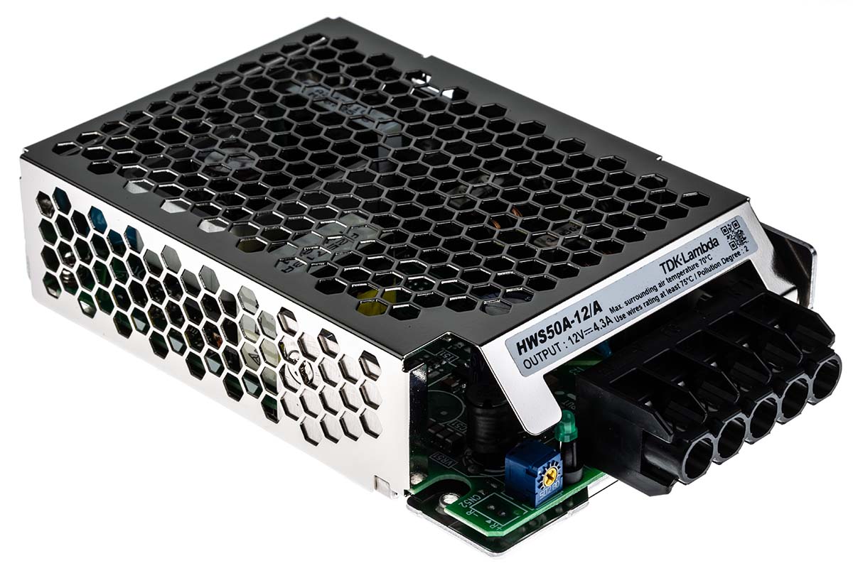 This is Embedded Switch Mode Power Supply SMPS 12V dc 4.3A 50W Enclosed manufactured by TDK-Lambda. The manufacturer part number is HWS50A-12/A. Additionally, the product is supplied with 1 outputs. The product is available in chassis mount configuration. The typical product's weight is 280g. Furthermore, the product is 26.5mm wide. Its accurate length is 82mm. It is a highly efficient product with an 87% of high efficiency. The product comes in 120mm depth.