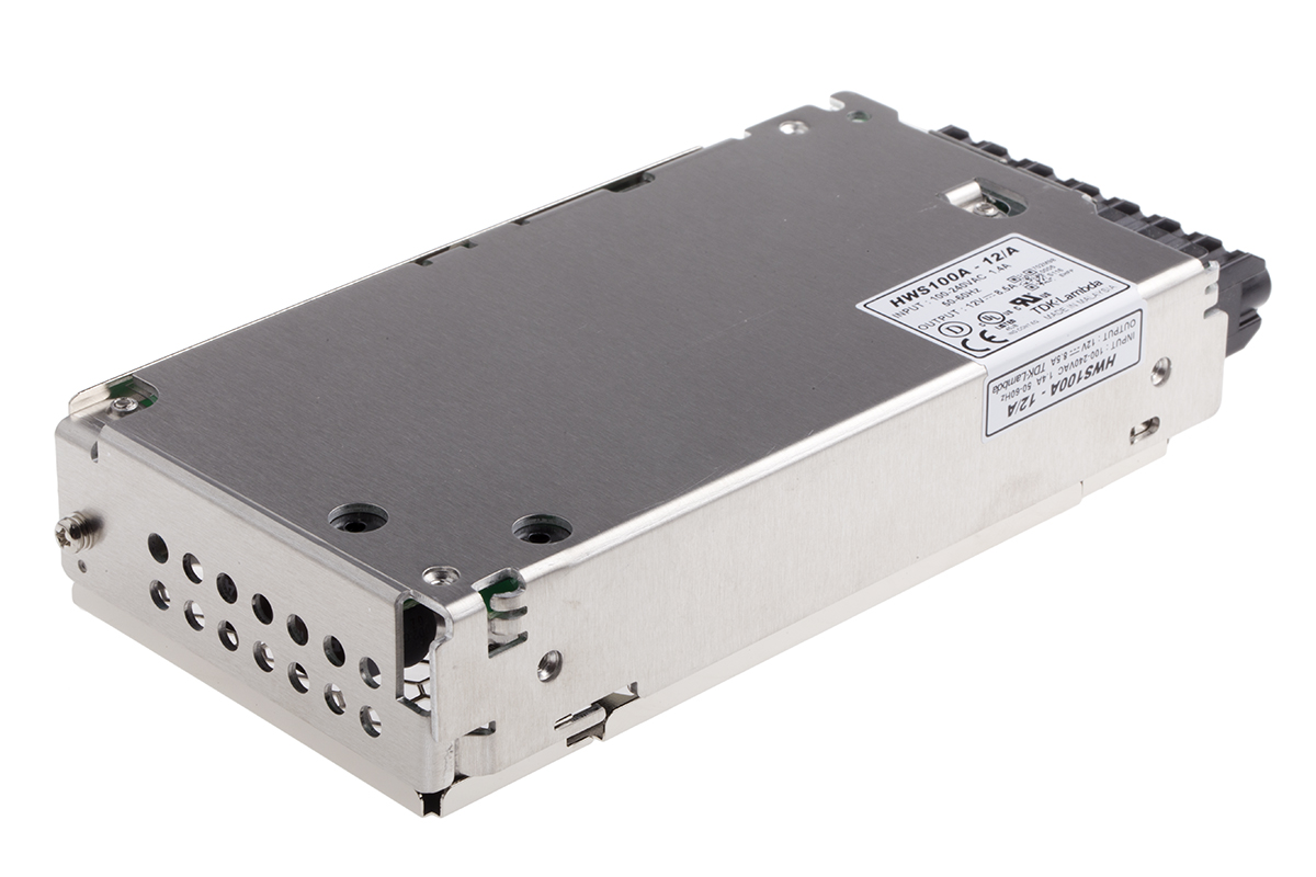 This is Embedded Switch Mode Power Supply SMPS 12V dc 8.5A 100W Enclosed manufactured by TDK-Lambda. The manufacturer part number is HWS100A-12/A. Additionally, the product is supplied with 1 outputs. The product is available in chassis mount configuration. The typical product's weight is 450g. Furthermore, the product is 28mm wide. Its accurate length is 82mm. It is a highly efficient product with an 89% of high efficiency. The product comes in 160mm depth.