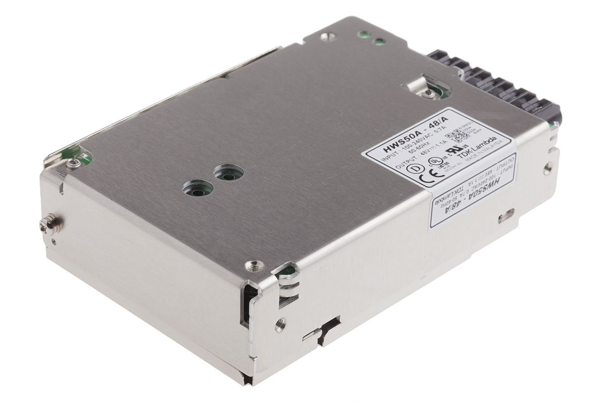 This is Embedded Switch Mode Power Supply SMPS 48V dc 1.1A 50W Enclosed manufactured by TDK-Lambda. The manufacturer part number is HWS50A-48/A. Additionally, the product is supplied with 1 outputs. The product is available in chassis mount configuration. The typical product's weight is 280g. Furthermore, the product is 26.5mm wide. Its accurate length is 82mm. It is a highly efficient product with an 87% of high efficiency. The product comes in 120mm depth.