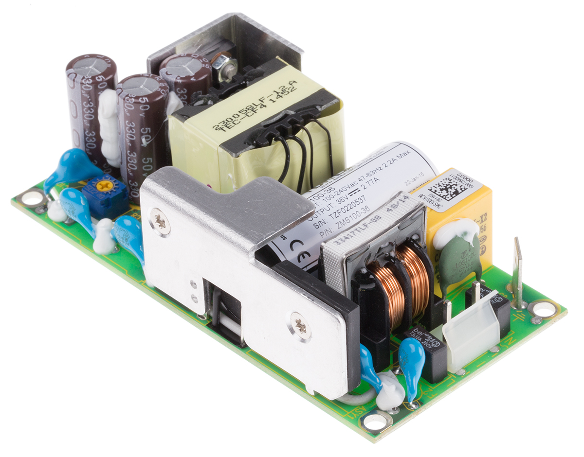 This is Embedded Switch Mode Power Supply SMPS 36V dc 2.25A 81W Open Frame manufactured by TDK-Lambda. The manufacturer part number is ZMS100-36. Additionally, the product is supplied with 1 outputs. The product is available in chassis mount configuration. The typical product's weight is 150g. Its accurate length is 101.6mm. Furthermore, the product is 50.8mm wide. The product comes in 31.9mm depth.