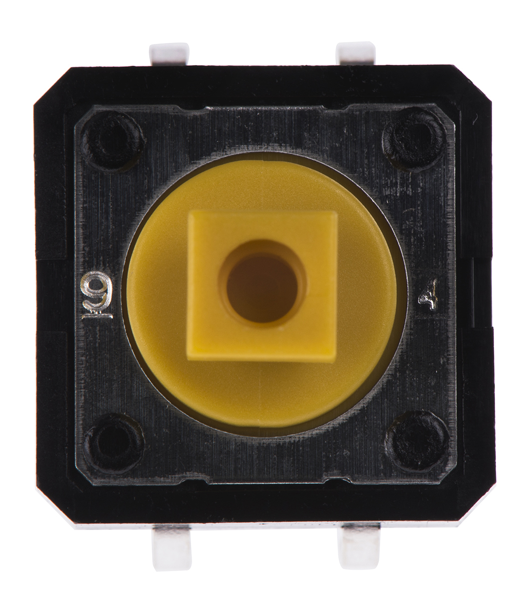 This is Yellow Plunger Tact Switch SPST-NO 50 mA@ 24 V dc 3mm manufactured by Omron. The manufacturer part number is B3F-4055. It has a 2.55 n of operating force. The given dimensions of the product include 12 x 12 x 7.3mm. The product is available in through hole configuration. Whereas, the minimum operating temperature of the product is -25°c. In addition, the height is 7.3mm. Furthermore, the product is 12mm wide. Its accurate length is 12mm. The product carries plunger actuator. The actuator is a 3mm long. The product also provide mechanical stability with 1000000cycles. It has a maximum operating temperature of +70°c. The terminal is a through hole type. The product is made from sturdy silver materials.