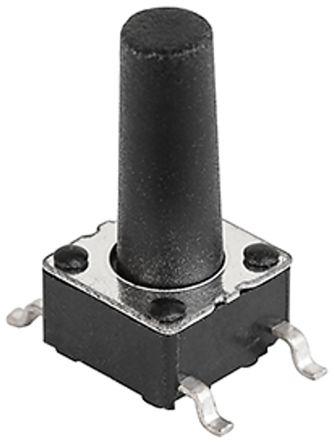 This is IP40 Black Button Tact Switch SPST-NO 0.8mm Through Hole manufactured by Schurter. The manufacturer part number is 1301.9301. It has a 1.6 n of operating force. The given dimensions of the product include 6 x 6 x 4.3mm. The product is available in through hole configuration. Whereas, the minimum operating temperature of the product is -20°c. Moreover, the product has a nominal 12v dc voltage rating. In addition, the height is 4.3mm. Furthermore, the product is 6mm wide. Its accurate length is 6mm. The product carries button actuator. The actuator is a 0.8mm long. The product also provide mechanical stability with >100000operations. It has a maximum operating temperature of +70°c. The terminal is a solder type. The product is made from sturdy cuzn+cu+ag materials.