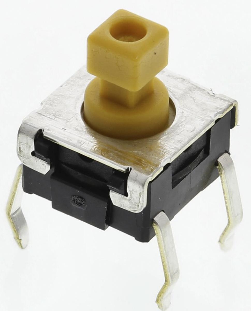 This is Plunger Tactile Switch SPST-NO 50 mA @ 24 V dc 3.9mm manufactured by Omron. The manufacturer part number is B3W-1052. It has a 2.25 n of operating force. The given dimensions of the product include 6.5 x 6 x 7.3mm. The product is available in through hole configuration. Whereas, the minimum operating temperature of the product is -25°c. In addition, the height is 7.3mm. Furthermore, the product is 6mm wide. Its accurate length is 6.5mm. The product carries plunger actuator. The actuator is a 3.9mm long. The product also provide mechanical stability with 300000operations. It has a maximum operating temperature of +70°c. The terminal is a through hole type.
